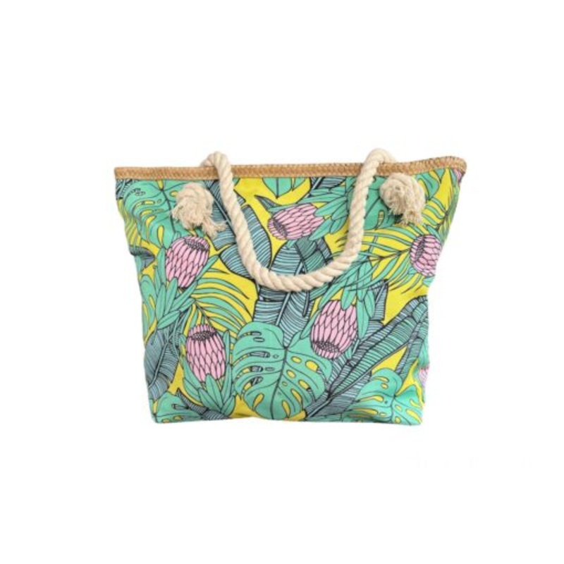 TEE8tJvoBnDxIPrinted Beach Bag Cotton Road Green Pink