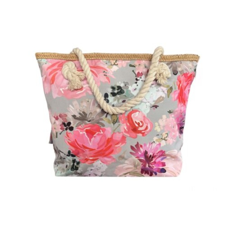 TEEHQtZHKiw2PPrinted Beach Bag Cotton Road Grey Pink