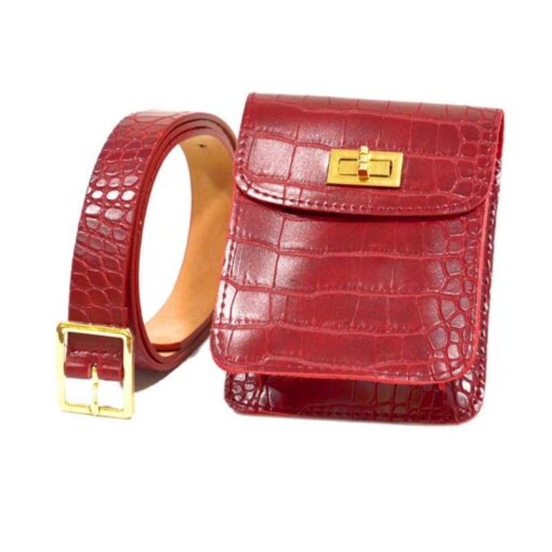 TEEor3YYhvk6QPU Leather Femal Belt Phone Pouch Small Waist Bag Red