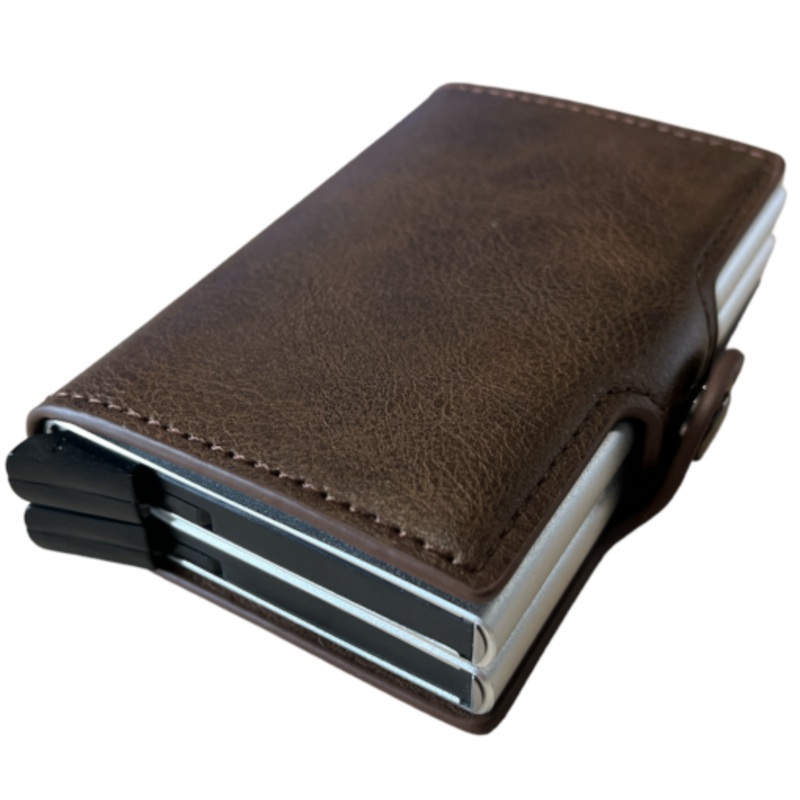 TEERR9CVMHJlRPU Leather RFID Double Pop Up Card Wallet