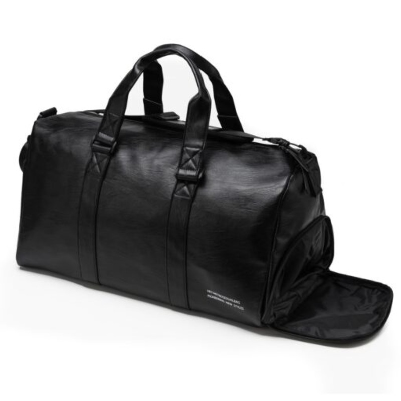TEE5NpxUGEJwfPU Leather Sports Gym Bag Fitness Travel Bag-Separate Shoe Compartment-40L Black
