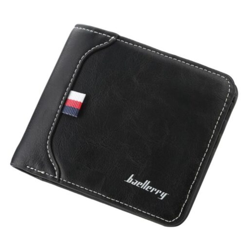PU Leather Tri-Fold Horizontal Wallet for Men Black
