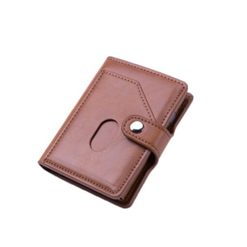 TEElLj3zCRb6BPU Leather Wallet Aluminium RFID Credit Card Holder Case Brown