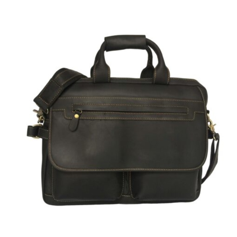 TEEvFlyxf21PgPure Leather Laptop Bag With Double Zipped Compartments Black