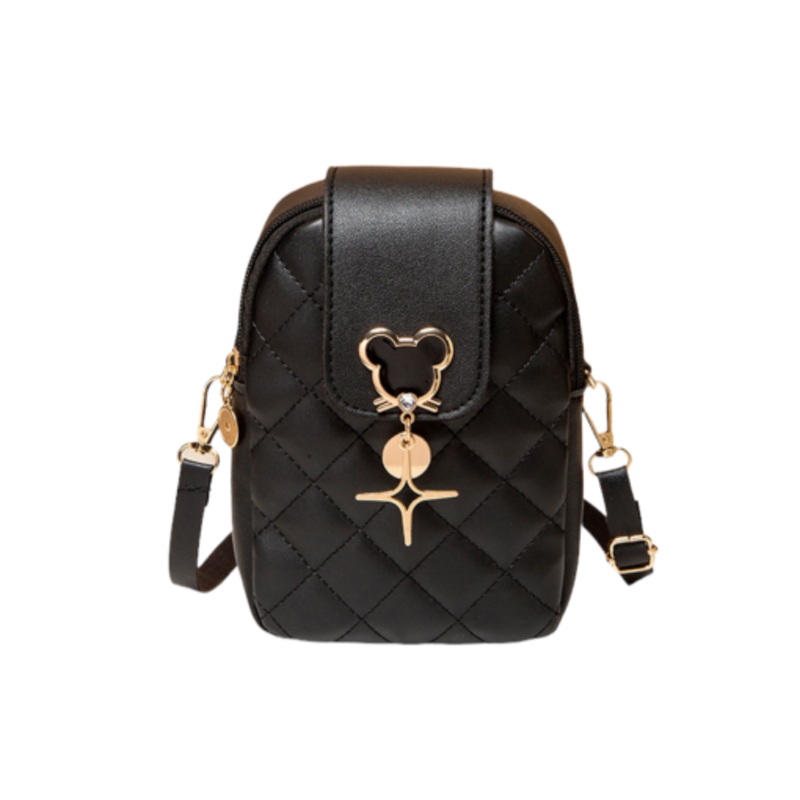 Quilted Mickey Cute Crossbody Sling Bag Double Compartment Phone Pouch Black