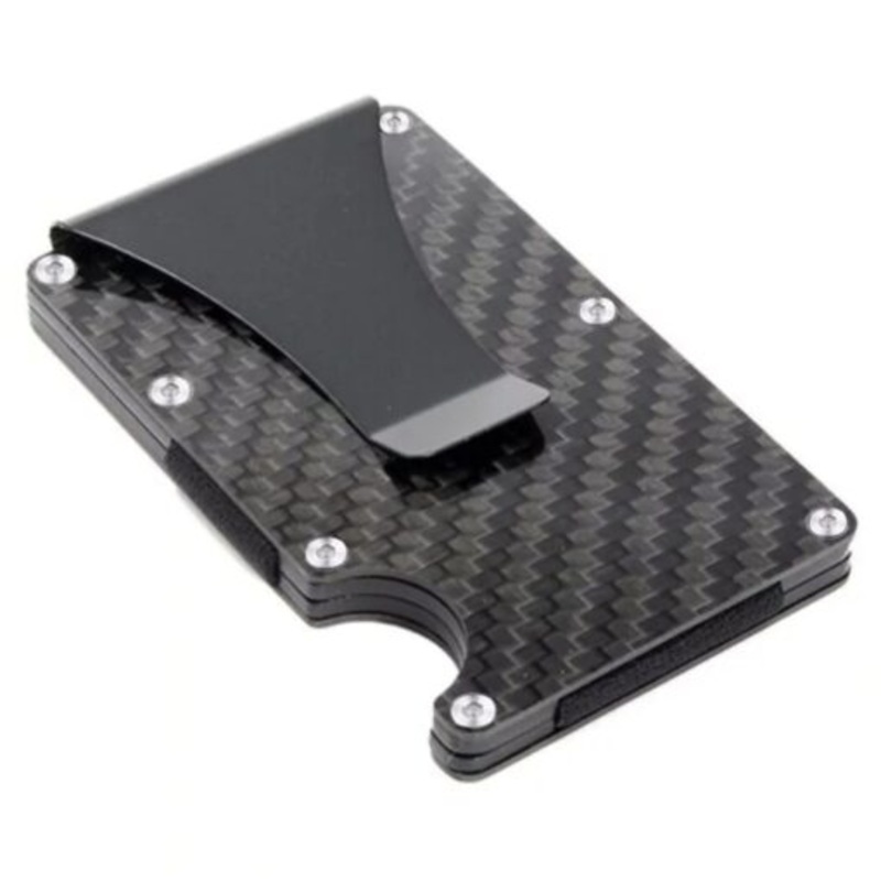TEEFfkrpLwqHYRappid Minimalist Wallet Card Holder & Money Clip-RFID Blocking Carbon Fibre Black
