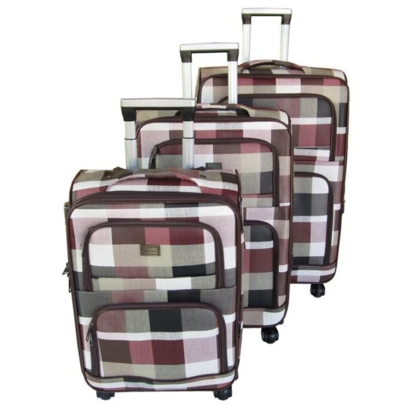 TEEK04uud8J1GRed/White Plaid 3-Piece Luggage Set