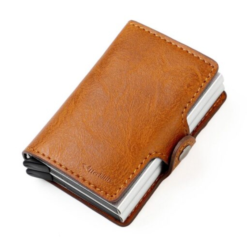 TEELx4Jzce2GyRFID Blocking Anti-theft PU Leather Credit Card Holder Wallet Brown