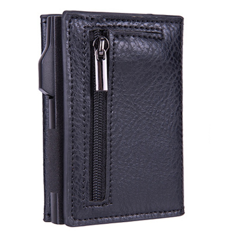 TEEXgYHdAUz71RFID protection bi-fold pop-up coin case wallet PU Leather Black