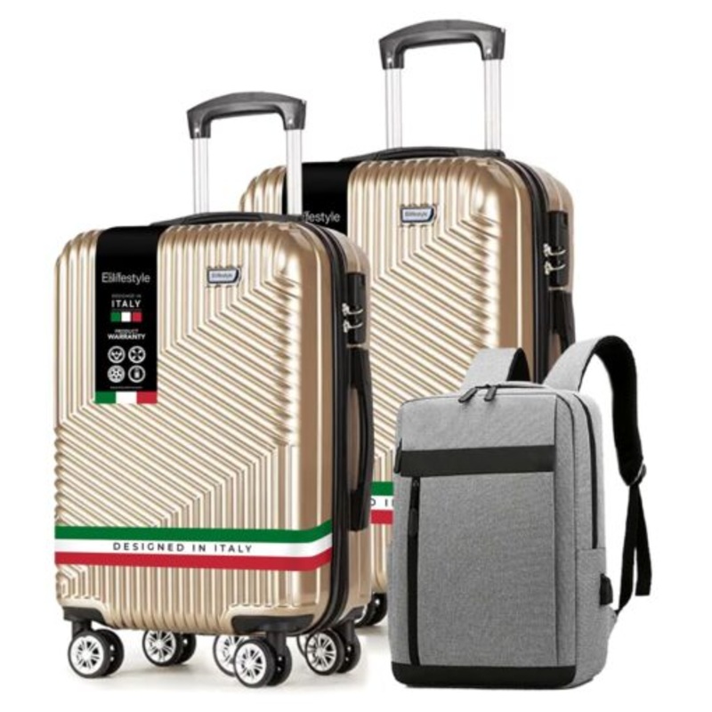 Roma 2 Set Hardshell Luggage & Backpack 360 Spinner Suitcase Gold