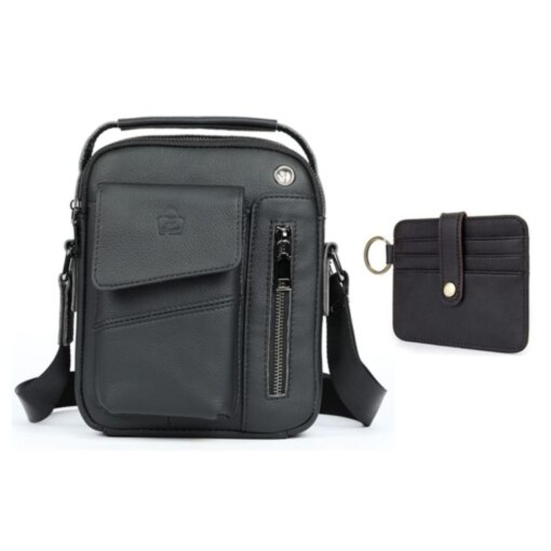 TEEmFIebnHEVASA Classy Genuine Leather Crossbody Messenger Shoulder Bag 7512 & Wallet Black