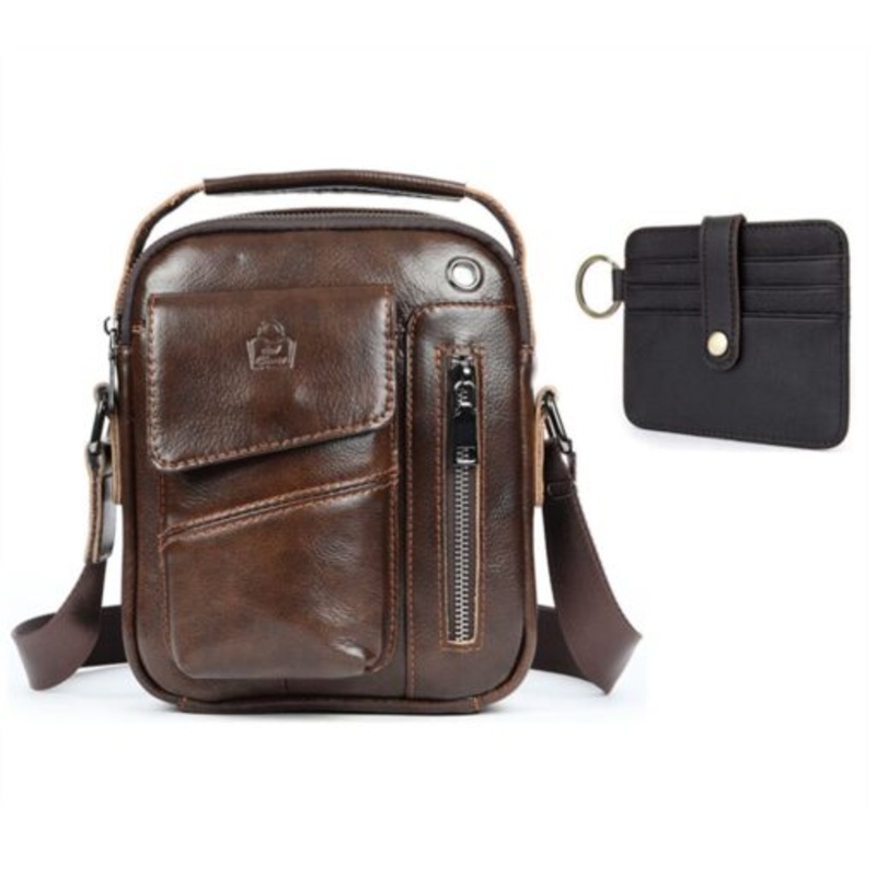 TEEroDQai8DGCSA Classy Genuine Leather Crossbody Messenger Shoulder Bag 7512 & Wallet Coffee