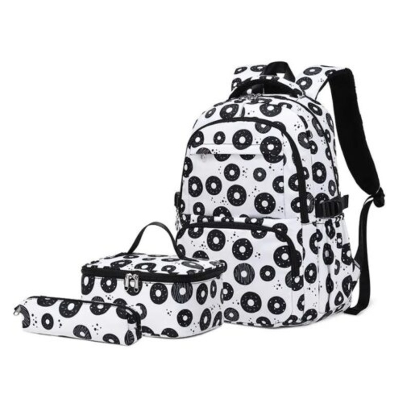 TEEZ3QiuhUuxvSchool Backpack Girls 3Pcs Sets Colorful Donuts with Lunch Bag Pencil case WhiteBlack
