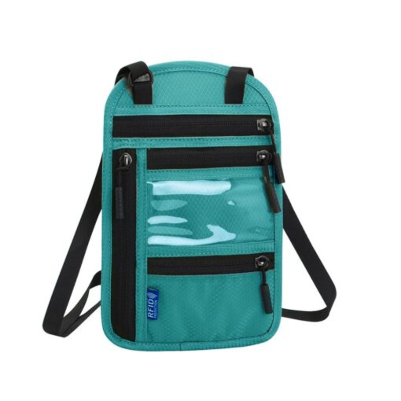 TEEQS6MJe7UFuSecurity Travel Neck Pouch RFID Blocking Passport Holder Neck Wallet Blue
