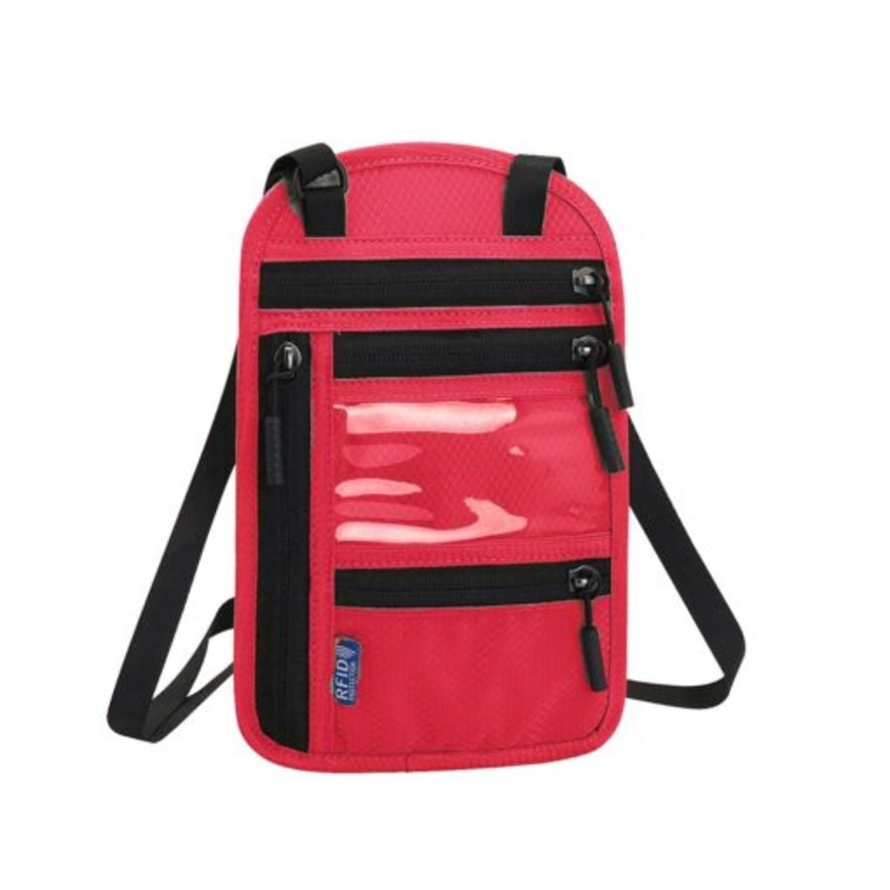 Security Travel Neck Pouch RFID Blocking Passport Holder Neck Wallet Red