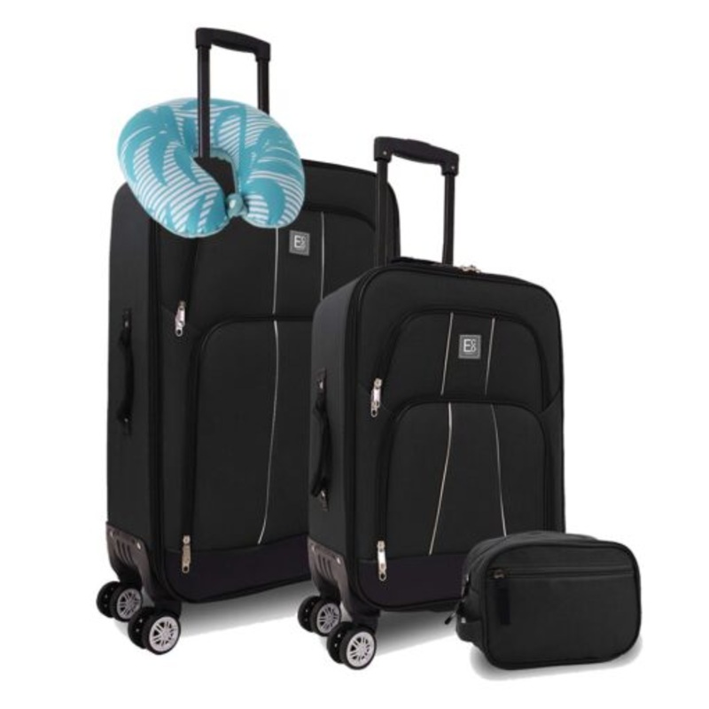TEEK4glkT1gwdSeville 3 Piece Luggage Set with Neck Pillow Black 55cm & 75cm