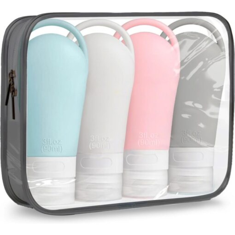 TEEazQbEI4TApSilicone Travel Bottles Set for Toiletries with Bag 4 x 90ml
