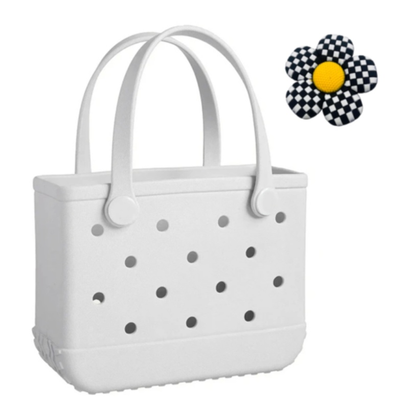 TEEZqFrJwtB0CSmall Ladies Beach Tote Waterproof Durable PVA Bag w/ Flower Charm White