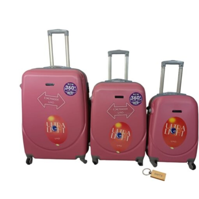 TEEoFIjkTraoOSmte -360 Degree Quad Wheel Luggage With Smte Bag tag 3 Piece Pink bubble Gum