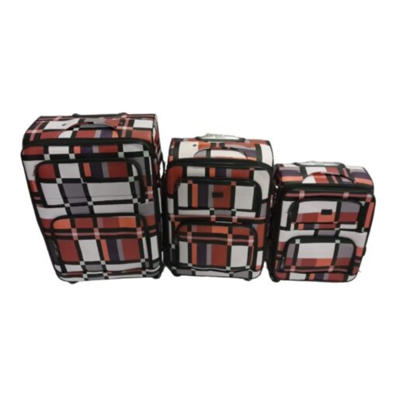 SMTE-Quality Luggage Set of 3 Leather Travel Suitcase Set Checks Art C3