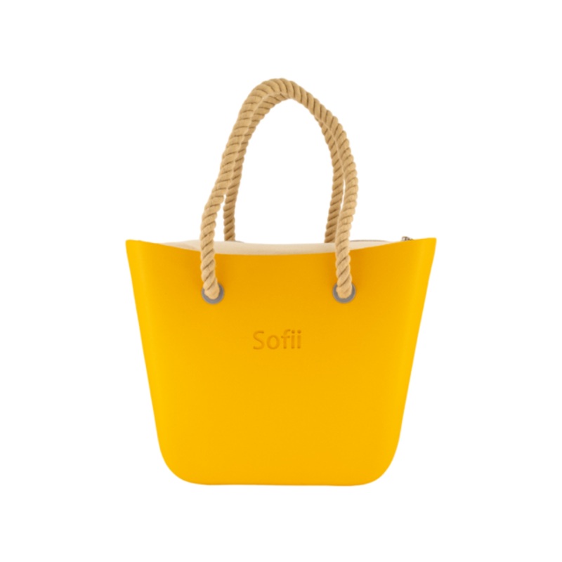 Sofii Designer Tote Handbag -Mustard- Beige- Beige Rope