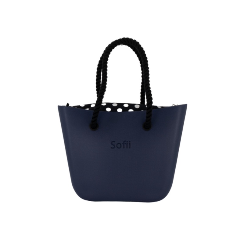 Sofii Designer Tote Handbag Navy Polka Black Rope
