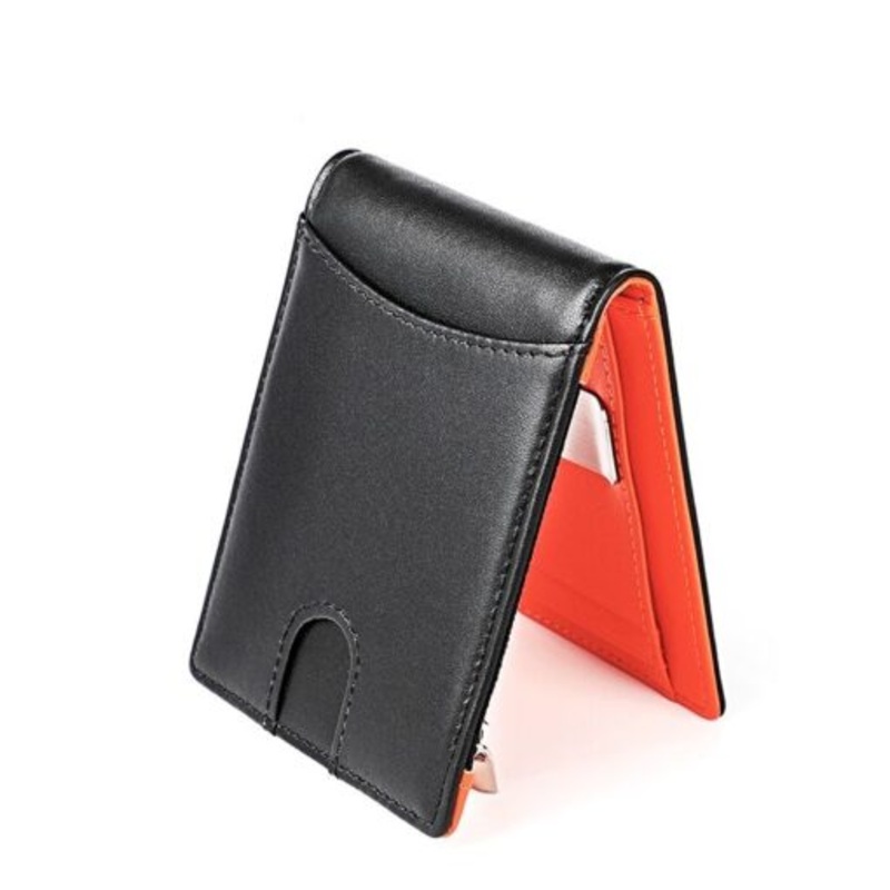TEEUyNnrq5kzDT4U Leather Minimalist Wallet RFID Blocking (Black & Orange)