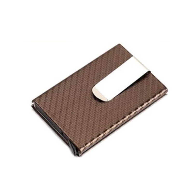 TEENTRvPeJZcaT4U Pop-Up Card Holder with RFID Protection Brown Carbon Finish