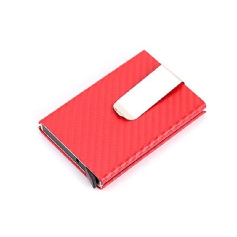 TEEC613FzyzL7T4U Pop-Up Card Holder with RFID Protection Red Carbon Finish