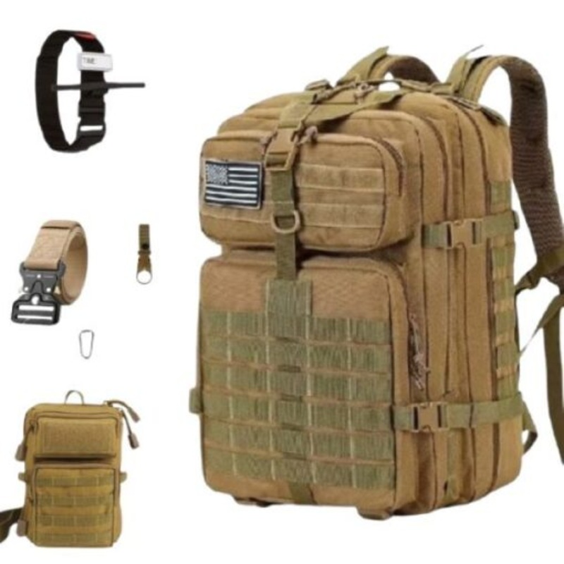 TEEUEqLTfQOF7Tactical Outdoor Backpack with Accessories for Sports Camping or Hiking Khakhi