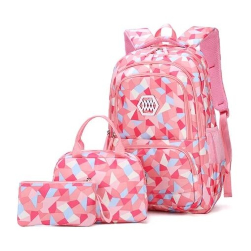TEEu1pwx634tWThe Clip Backpack 3 Pieces set Geometric Prints Waterproof schoolbag Pink