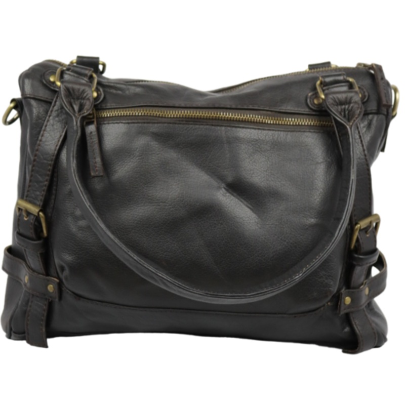 TEEURDn9LkV5cTotal Leather Buffalo Leather Handbag with Strap HB2 Black or Brown Buffalo Black HB2-B