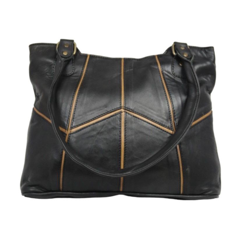 TEETYpXnorKHWTOTAL LEATHER Lamb Leather Handbag Black with Tan or Red Piping LHBLLP001 Black with Tan Piping
