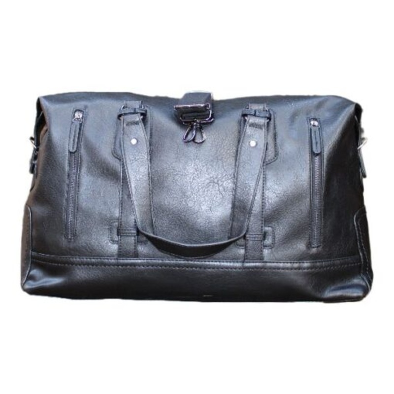 Travel Duffel Bag PU Leather Overnight Weekender Bag Black