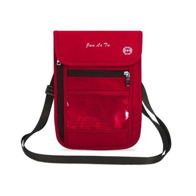 TEE6qOBZtXXksTravel Neck Pouch Waterproof Passport Holder with RFID Blocking Red
