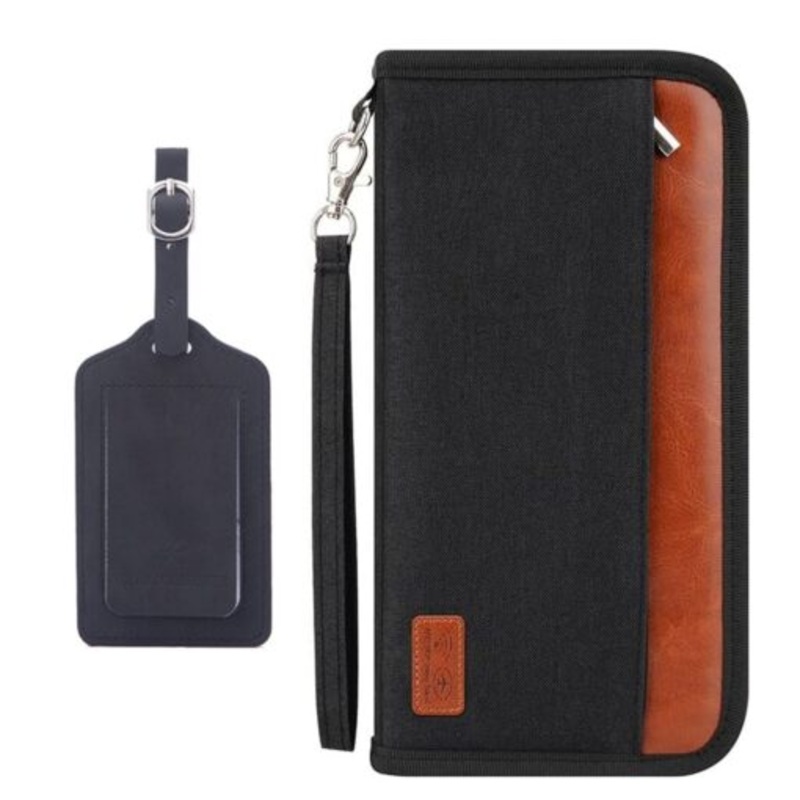 TEE4T4yVqStG7Travel Passport Holder Portable Wallet Credit Cards Holder with Luggage Tag Black