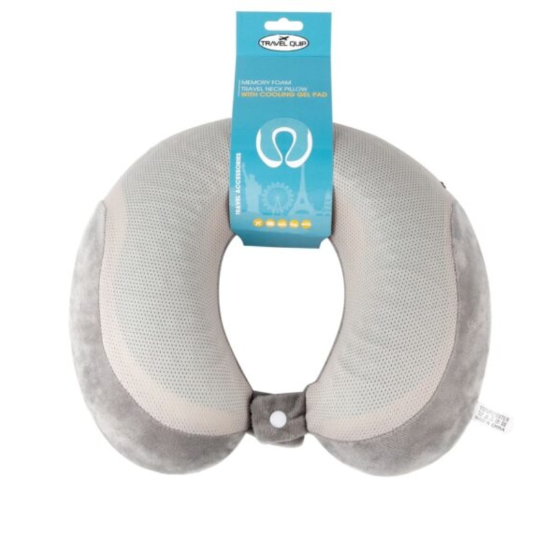 TEEkLSlE1nWORTravelQuip Memory Foam Travel Neck Pillow with Cooling Gel Pad Grey