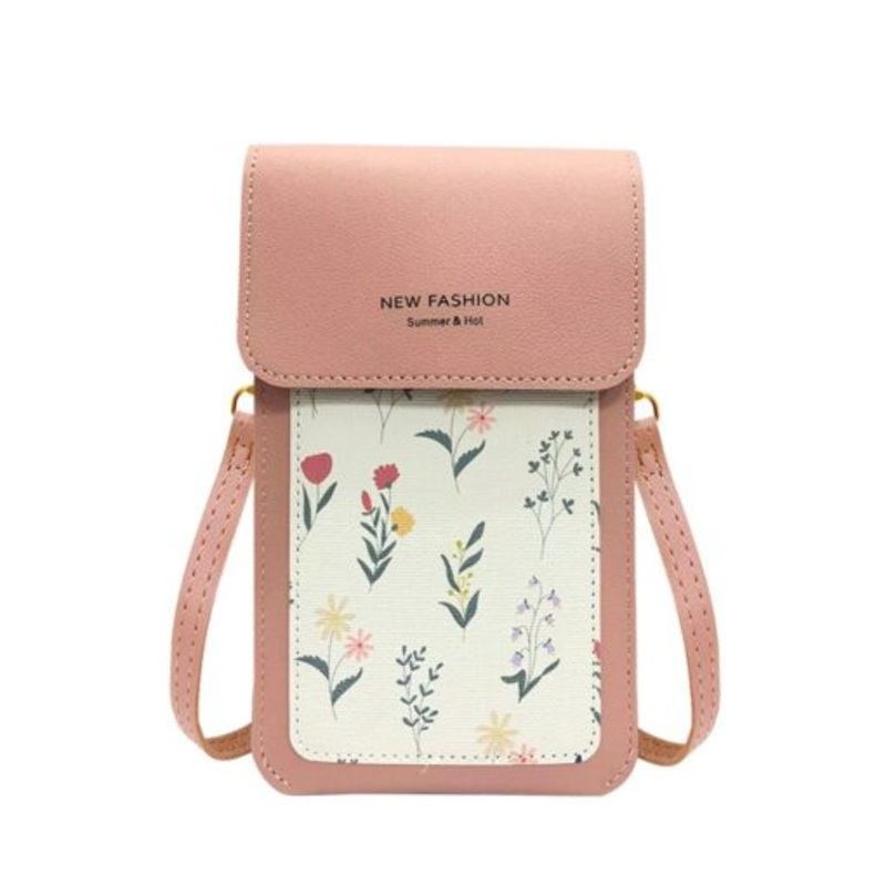 Trendy Crossbody Mobile Phone bag with Touchscreen Support and Clear Panel Pink