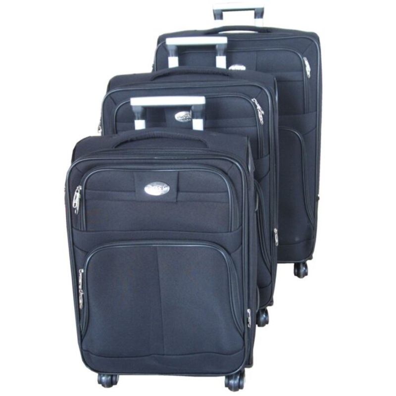 TEEVvJKTOJfwCTrolley 3 Piece Travel Luggage Spinner Black Fabric