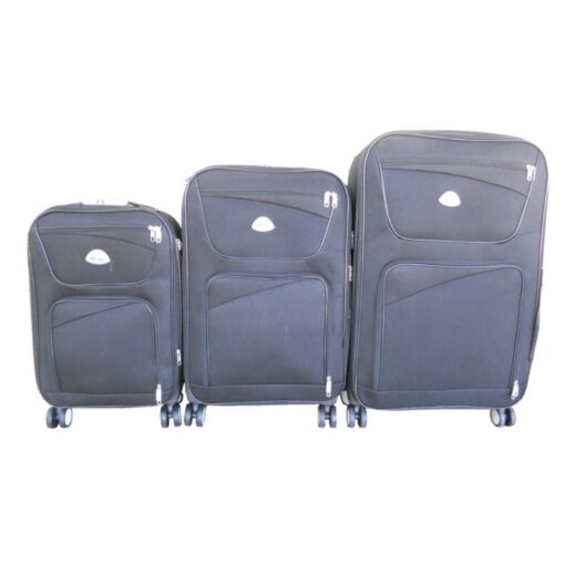 Trolley 3 Piece Travel Luggage Spinner Fabric Black