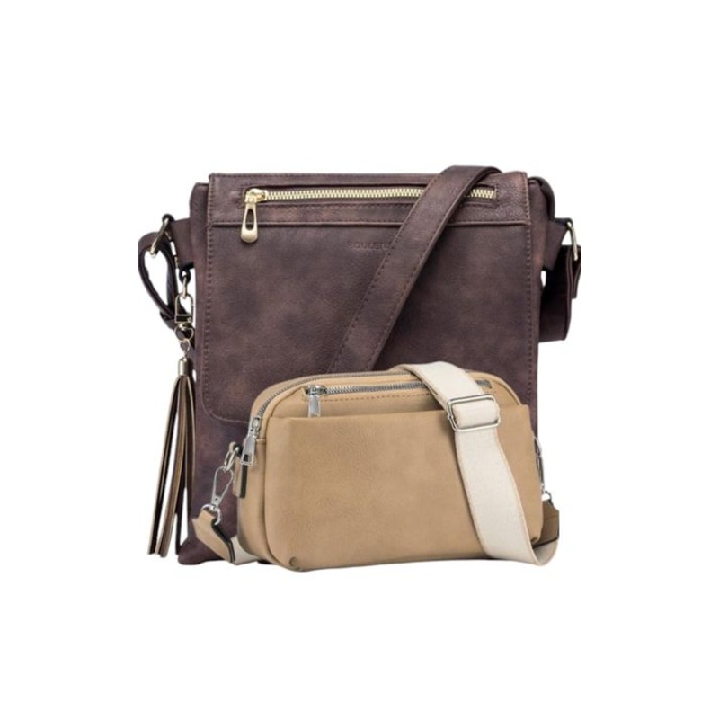 TEE9VCzp5ODbPTwo-toned Crossbody Handbag Combo Set Brown & Khaki