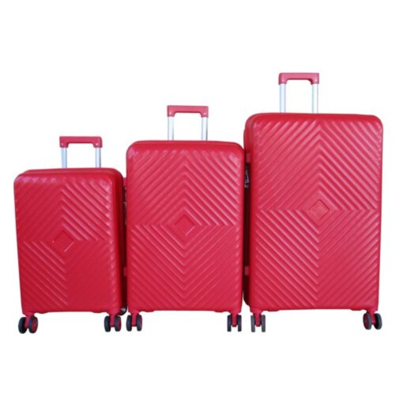 TEEtnW7qFpY6YUnbreakable Durable Red PP 3-Piece Luggage Set Lock Nested Design